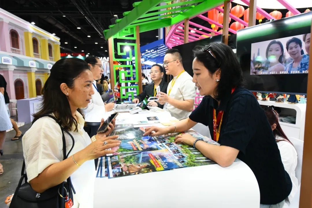 展会开幕首日,驻曼谷旅游办事处组织多家泰国旅行商代表与中国参展企业开展自由洽谈与交流活动。各参展机构还轮番进行文旅资源推介,并提供最新旅游咨询。